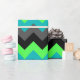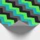 Eine Rolle Papier mit einem eleganten Muster aus bunten Chevrons in schwarz, grau, grün und türkis.