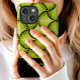 Mit diesem eleganten Design, das ein atemberaubendes Muster aus schwarz-grünen Retro-Gatsby-Palmen aufweist, tauchen Sie ein in den Glamour der Roaring Twenties. Die faszinierenden Palmenmotive erinnern an den luxuriösen Art Déco-Stil und schaffen ein elegantes und stilvolles Ambiente. Das Script-Name-Element fügt eine personalisierte und elegante Touch hinzu, die dieses Design einzigartig und elegant macht. Ideal für diejenigen, die Vintag inspiriert und kühne Accessoires Liebe.