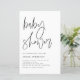 Mit dieser minimalistischen Baby-Dusche laden wir Sie zu Ihrer Veranstaltung ein. Es enthält ein schwarz-minimalistisches handgeschriebenes Skript mit einfacher Typografie. Personalisieren Sie diese durch Hinzufügen von Namen, Datum, Uhrzeit, Ort und anderen Details. Diese moderne Babydusche lädt Sie auf anderen Cardstock ein.