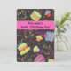 Diese Einladung ist ideal für eine lustige 50. Geburtstagsfeier oder ein anderes Jahr. Alle Wörter sind einfach zu anpassen, um es zu Ihrem eigenen zu machen. Eine Seite der Einladung hat ein Design von bunten Original-Kunst von zufälligen Geburtstagskuchen und Kuchen, das Wort "glücklicher Geburtstag", Ballons, Kerzen, Bänder und Punkte auf einem schwarzen Hintergrund. Ein fuchsienheiß rosa Streifen hat die anpassbaren Worte "Du bist eingeladen", einen personalisierten Namen und "50. Geburtstagsparty". Die andere Seite hat alle Felder für Ihr Party. Die Grenze ist die gleiche Kunst mit einem heißen rosa umrissenen schwarzen Bereich für alle Informationen, um Ihre eigene Einladung anpassen. Einfach für andere Ereignisse anpassen.