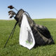 This cute monogram golf towel features a stylish black watercolor golf bag filled with clubs, surrounded by a touch of green grass. The design cleverly incorporates a simple serif font initial monogram on the bag in white, standing out against the dark background. Below the monogram, the full name is elegantly displayed in script typography, adding a personal touch. The monogram can be customized to any color. Perfect for the lady golfer in your life, this fun and stylish golf towel makes a great gift for Christmas, birthdays, Mother’s Day, or any special occasion. Personalized Initial Name Monogram Golf Towel Black Watercolor Golf Bag Gift For Her Script Font.