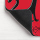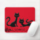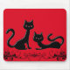 Niedliches Mauspad mit zwei schönen schwarzen Kätzchen Cartoon auf einem roten Hintergrund.