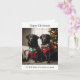 Schwarze Labrador Hunde, die ihre besten Weihnachtsschwitzer tragen, wünschen Ihnen ein frohes Weihnachtsfest - PS: Sagen Sie dem Weihnachtsmann, dass sie sehr gut geblieben sind. Sie will nicht, ihre Weihnachtsferien-Leckereien zu verpassen!