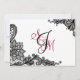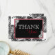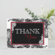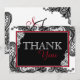 Elegante schwarze Spitzen auf weißem Hintergrund und weiße Spitzen auf schwarzem Hintergrund mit roten und schwarzen Monogramm und weißem Kontrast Moderne Goth Dankbarkeit Karte.