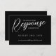 Elégante réponse noire en ligne carte RSVP dans un design de typographie noir et blanc avec un monogramme de couronne de laurier sur le dos et de belles polices. Mariage de typographie noire RSVP carte en ligne avec un monogramme vert et de belles polices. Elégante carte RSVP personnalisée avec votre site Web afin que vos invités puissent RSVP en ligne. Carte RSVP noire pour réponse en ligne avec des polices blanches élégantes.