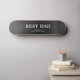Schwarzes Leder drucken Best Vater Vatertag Skateboard. Der Hintergrund ist aus schwarzem Leder gedruckt. Der Text ist eine trendige Typografie. Ein perfektes Geschenk für einen Vater oder einen neuen Vater am Vatertag. Dieses moderne, maßgeschneiderte Skateboard ist ein perfektes Geschenk für einen Papa am Vatertag, Geburtstag oder Weihnachten und einen süßen Sake. Fügen Sie Ihre Namen hinzu.