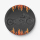 Black Leather Orange Flames Motorrad-Party Pappteller
