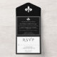 Elegante und einfache Hochzeit in einer Einladung mit einer Lilie auf schwarzem Hintergrund. Dieses Design ist eine einzigartige Wahl für eine moderne Hochzeit. Einfach an Ihre Hochzeitsdetails anpassen. Klicken Sie auf "Anpassen", um weitere Personalisierungsoptionen zu erhalten.