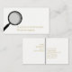 Stilvolle minimalistische Visitenkarte in Gold, Schwarz und Weiß mit einer großen Lupe. Eine saubere, minimalistische Visitenkarte für ein privates Auge.