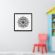 Schwarze Blumenmandala-Illustration auf einem weißen Hintergrund mit einem schwarzen Rahmen.