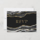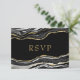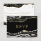 Black Marble Agate Gold Glitzer Wedding RSVP Karte