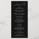 Programme de mariage minimal avec police de caractères de script moderne sur un arrière - plan noir. Toutes les informations sur la cérémonie du mariage et le nom de la fête de mariage indiqué sur ce programme.
