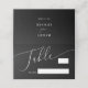 Minimale und einfache Tischnummer Platzkarte für Ihre Hochzeit mit einem modernen Skript-Schriftart, der "Tisch" mit einer Leerzeile, wo Sie die Tischnummer und den Namen des Gastes ausfüllen können. Sie können die Namen der Braut und des Bräutigams auf der Rückseite hinzufügen. Die Hintergrundfarbe ist schwarz.