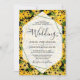 Blumenmotiv mit gelben Mit Augen Susan-Blume und grünen Blätter Muster, ein sonniger und heller Garten inspiriert Wedding Einladung Design.