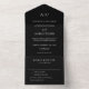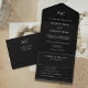 Dieses klassische schwarze Monogramm vereint zeitlose Eleganz in einer Einladung zur Hochzeit. Mit einem schwarzen Hintergrund und personalisierten Monogrammen bietet es eine einfache und dennoch raffinierte Möglichkeit, Ihren großen Tag zu verkünden. Das All-in-One-Format beinhaltet die Einladung zusammen mit der UAWG, sodass es sowohl praktisch als auch stilvoll ist.