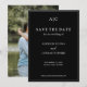 Lassen Sie sich mit unserer Black Monogram Wedding Foto Save the Date Card nachhaltig beeindrucken. Die elegante Karte verbindet zeitlosen Charme mit zeitgenössischem Stil. Freuen Sie sich auf eine elegante schwarze Kulisse und ein modernes Monogramm. Bringen Sie Ihr Foto auf der Rückseite mit. Ideal für Paare, die eine raffinierte, raffinierte Touch suchen, und das Set für eine schicke, unvergessliche Feier.