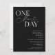 Minimalistische Hochzeitsdinner mit Typografie-Probe, die "noch einen Tag" sagt. Der Hintergrund ist schwarz und die Texte sind weiß.