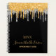 Un arrière - plan noir chic avec des gouttes de parties scintillant en faux or et argent à la mode, la peinture goutte à goutte. Personnalisez et ajoutez une année, un nom et un titre. Le nom est écrit avec un script de style moderne écrit à la main avec des swashes. Parfait pour l'école, le travail ou l'organisation de votre vie personnelle/familiale. Pour que les swashes ne suppriment que le nom de l'échantillon, laissez les espaces ou émoticônes devant et après le nom. Texte doré.