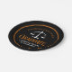 Diese moderne, schwarz-orangefarbene, maßgeschneiderte Party-Platte für die Graduiertenklasse 2025 zeichnet sich durch klassische Typografie aus. Passen Sie mit Ihrem geschlossen Jahr unter den weißen Maßstäben der Justiz für dieses große personalisierte Anwalt oder Anwalt Geschenk der Glückwünsche.
