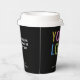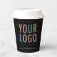 Easily personalize our 8 ounce paper cups with your company logo and custom text. These FDA approved paper cups are for cold and hot drinks. The dimensions for the 8 oz cups are 3.75 inch x 3 inch. Available without or with lids. Also available in 12 oz size. Designed in black and other colors (all colors are customizable). Sold in sets of 8. Low minimum order quantity and no setup fee. Printed in the U.S.A.