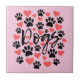 Black Paw Prints Red Hearts Typografie Pink Fliese