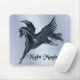 Fantasy Design mit einem fliegenden schwarzen Pegasus und Text Sprichwort Night Magic.