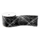 Christmas ribbon in black and gray tones. Plaid ribbon with a scattering of black Christmas trees. Choose a preferred length and width, in satin or grosgrain. Use for making bows and decorations, or for wrapping special gifts.