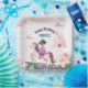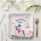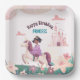 Black Princess Riding Unicorn Square Papierplatte Pappteller