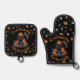 🖤 Black Pumpkin King Oven Mitt Set 🎃