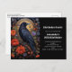 Geburtstagsfeier Postkarteneinladung mit einer schwarzen Krähe auf einem Ast, umgeben von roten Blume. Cooles gotisches Flair.