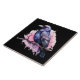 Keramik Kachel mit einem Bild einer schwarzen Krähe mit lila rosa Flügeln. Ein rosa Aquarell-Spritzer hinter diesem mystischen Vogel.