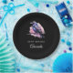 Papier Teller mit einem Bild einer schwarzen Krähe mit lila rosa Flügeln. Ein rosa Aquarell-Spritzer hinter diesem mystischen Vogel.