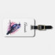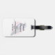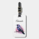 Gepäckanhänger mit einem Bild einer schwarzen Krähe mit lila rosa Flügeln. Ein rosa Aquarell-Spritzer hinter diesem mystischen Vogel.