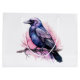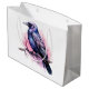 Geschenktasche mit einem Bild einer schwarzen Krähe mit lila rosa Flügeln. Ein rosa Aquarell-Spritzer hinter diesem mystischen Vogel.