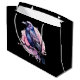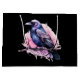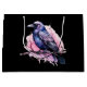 Geschenktasche mit einem Bild einer schwarzen Krähe mit lila rosa Flügeln. Ein rosa Aquarell-Spritzer hinter diesem mystischen Vogel.