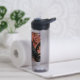 Für Rabe- und Gothic-Fans! Genießen Sie Ihren Durst mit dieser Plastikflasche, die das Foto eines schwarzen Rabe und eines flammenden japanischen Ahornbaums mit knorren, verdrehten Ästen zeigt. Das Bild ist nur auf einer Flaschenseite gedruckt. Wählen Sie Ihren Flaschenstil aus.