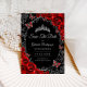 Black red and silver Quinceanera celebration Save The Date card. Features, script font, butterflies, watercolor roses and tiara. Perfect for an elegant princess style glam celebration. Personalize with your own details. Printed Zazzle cards or instant download digital printable template.