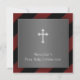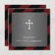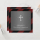 Élégante bande diagonale rouge et noire avec la première invitation de communion sainte du garçon de croix blanche.