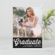 Mit diesem individuell gestaltbaren Foto Abschluss laden wir Sie zu Ihrer Veranstaltung ein. Es verfügt über ein Retro-fett formatiertes Skript und klassische Typografie. Personalisieren Sie es, indem Sie Ihre Daten hinzufügen. Diese Schwarzweiß-Foto-Abschluss-Einladung ist auch in anderen Karton- und Farbvarianten erhältlich.
