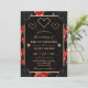 Black & Rote Rose Pattern & Gold Diamonds Wedding Einladung