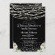 Black Rustic White Roses String Lights Wedding Einladung