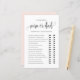 Raten Sie mal, wer? Mama oder Papa? Fügen Sie dieses lustige und spielerische Spiel Ihrer Babydusche hinzu. Es enthält ein schwarzes whimsical Skript, klassische Typografie, rot-rosa Hintergrund. Sie können die Rückseite dieser Baby Duschspielkarte personalisieren. Diese Gästekarte eignet sich perfekt für jedes Babyduschthema und jede Saison.