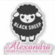 Funny black sheep sticker with pink script and "Never Follows The Flock" quote. Cute humor design for independent thinkers. Personalized name in pink script. Perfect for decorating laptops, water bottles, phone cases, notebooks, and planners. Great gift for girls and women who dare to be different.