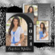 Moderne Schwarz-Silber-Highschool Abschluss-Ausweis für Klasse 2024 oder jedes Jahr. Personalisieren Sie mit Ihrem eigenen Foto in unserem Bogen-Rahmen, Ihrem Namen, Schulnamen und Abschluss Jahr. Auf der Rückseite befinden sich zwei weitere Fotos, die Sie mit den Details versehen, die Sie Ihrer Karte hinzufügen möchten. Fügen Sie die Informationen der Graduiertengruppe oder Ihre Leistungen und Pläne für die Zukunft hinzu.