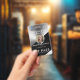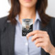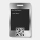 Elegante und stilvolle Silver and Black Business Conference oder Exhibition Foto ID Card für kleine Unternehmen mit QR Code & Foto Identification Abzeichen Einfach personalisieren Sie das Design, um Ihre Abzeichen völlig einzigartig für Ihre Firmenveranstaltung zu machen. Zusätzlicher QR-Code und benutzerdefinierter Text auf der Rückseite für Bedingungen oder andere Details.