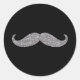 Black Silver Glitz Mustache Runder Aufkleber