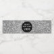Glückliche Wasserflaschen-Etiketten aus Neujahr in Schwarz/Weiß mit silberfarbenem Glitzer-Muster.