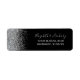 Das elegante, moderne Ehering-Adressetikett besticht durch ein silbernes Imitat-Glitzer-Design. Die links Kulisse dieses eleganten, modernen Ehering-Adressetiketts. Der anpassbare Text kombiniert silbergraue Handschrift, Kupferplatte und kursiv Schriftart auf schwarzem Hintergrund.