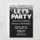 Black Silver Glitzer Geburtstagsparty Einladung für jedes Alter mit modernen Drehbüchern und lustigen Ballons.