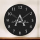 Black Silver Modern Script Girl Monogram Name Runde Wanduhr